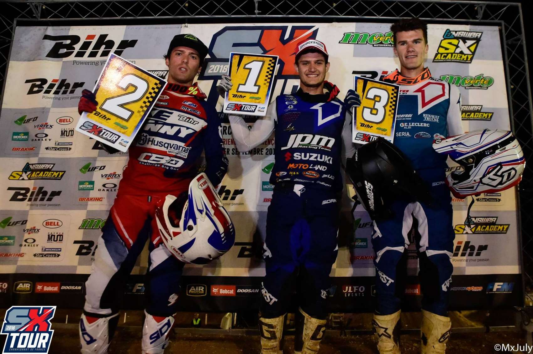 Podium SX2 : Anthony Bourdon - Husqvarna, Thomas Do - Suzuki et Julien Roussaly - KTM (photo SX Tour)