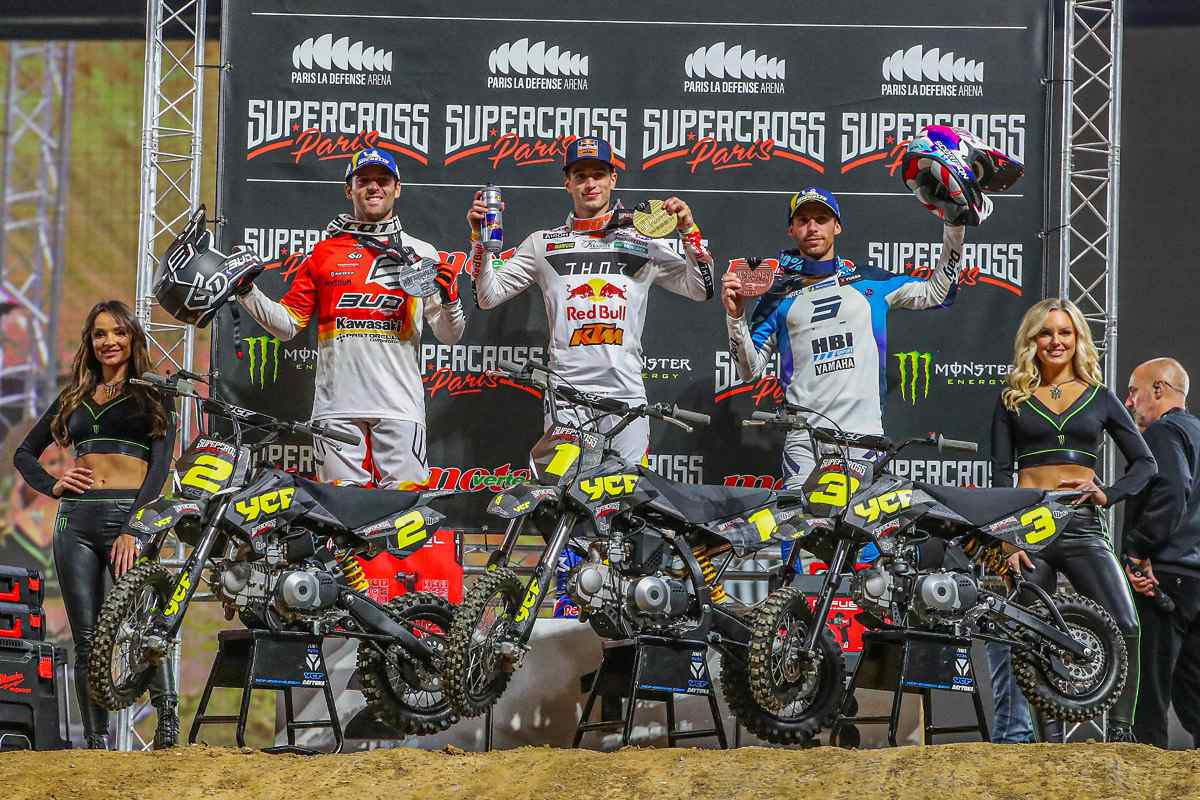 Podium SX2 : Antony Bourdon- Kawasaki, Tom Vialle - KTM et Maxime Desprey - Yamaha (photo Mediacross)