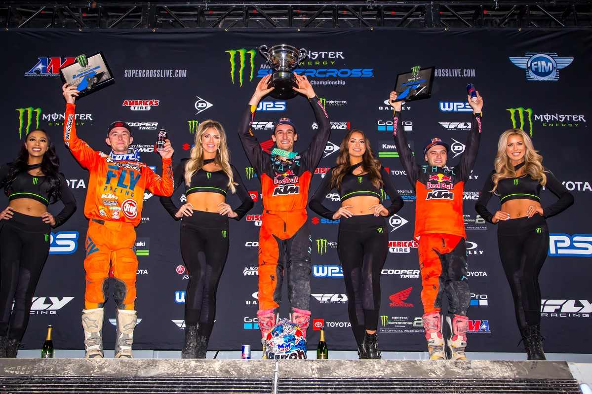 Podium SX450 : Blake Baggett - KTM, Marvin Musquin - KTM et Cooper Webb - KTM (photo KTM Racing/Simon Cudby)