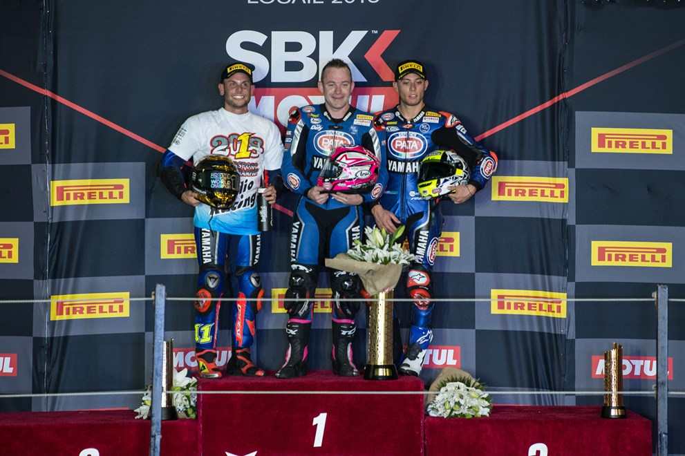 Podium WSSP : Sandro Cortese - Yamaha, Lucas Mahias - Yamaha et Federico Caricasulo - Yamaha (photo WSBK.com)